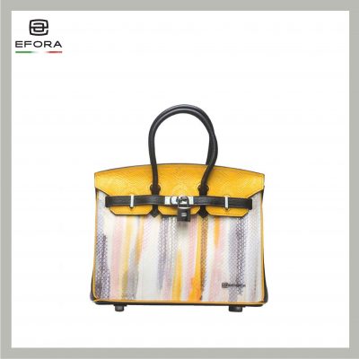 Nếu phải chọn chiếc túi nổi bật, cá tính mà vẫn thanh tú và nữ tính thì đây sẽ là hai lựa chọn từ EFORA. Với hai sắc xanh – vàng mang đậm hơi thở mùa xuân cùng những vệt màu nhấn nhá được phối khéo léo, xách trên tay chiếc túi này, nàng vẫn nổi bật dù chỉ diện váy áo sơ mi đen trắng nơi công sở hàng ngày.