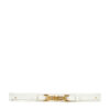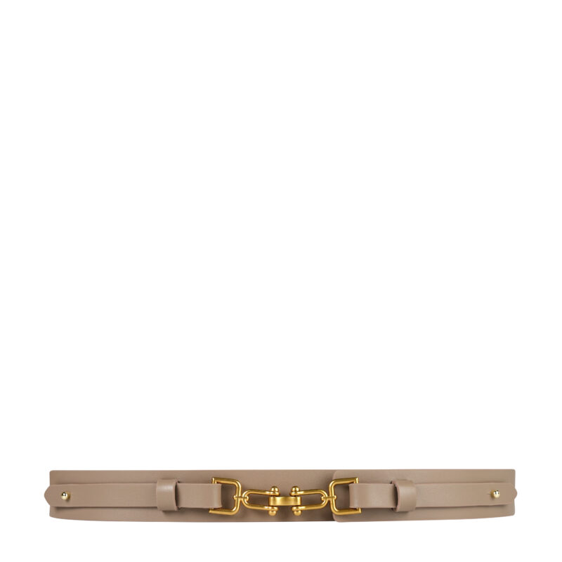 Thiết kế độc đáo lấy cảm hứng từ những móc xích mạnh mẽ, kết hợp ánh vàng sang trọng giúp chiếc thắt lưng trở nên nổi bật như một món trang sức thời thượng. Mặt khóa không chỉ giữ chắc form mà còn đóng vai trò như trung tâm thu hút mọi ánh nhìn. - Bản dây dày dặn, tôn vòng eo nàng: