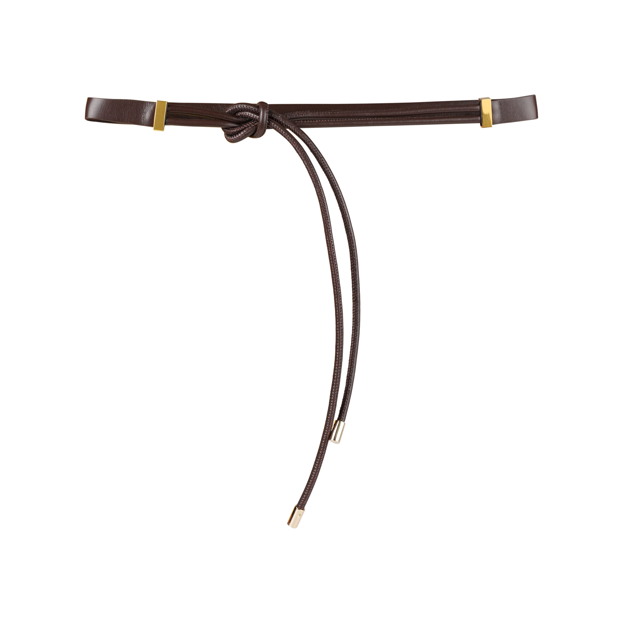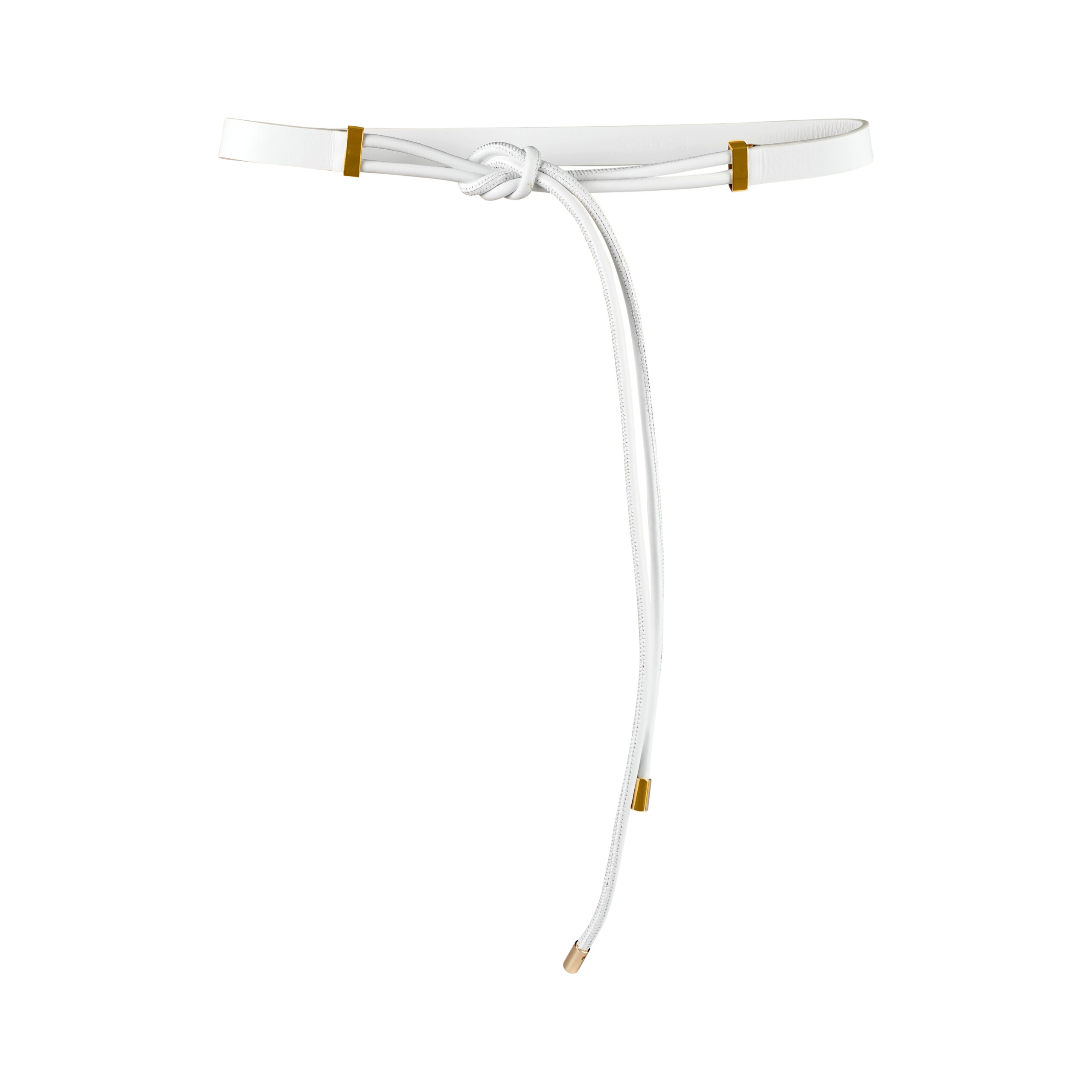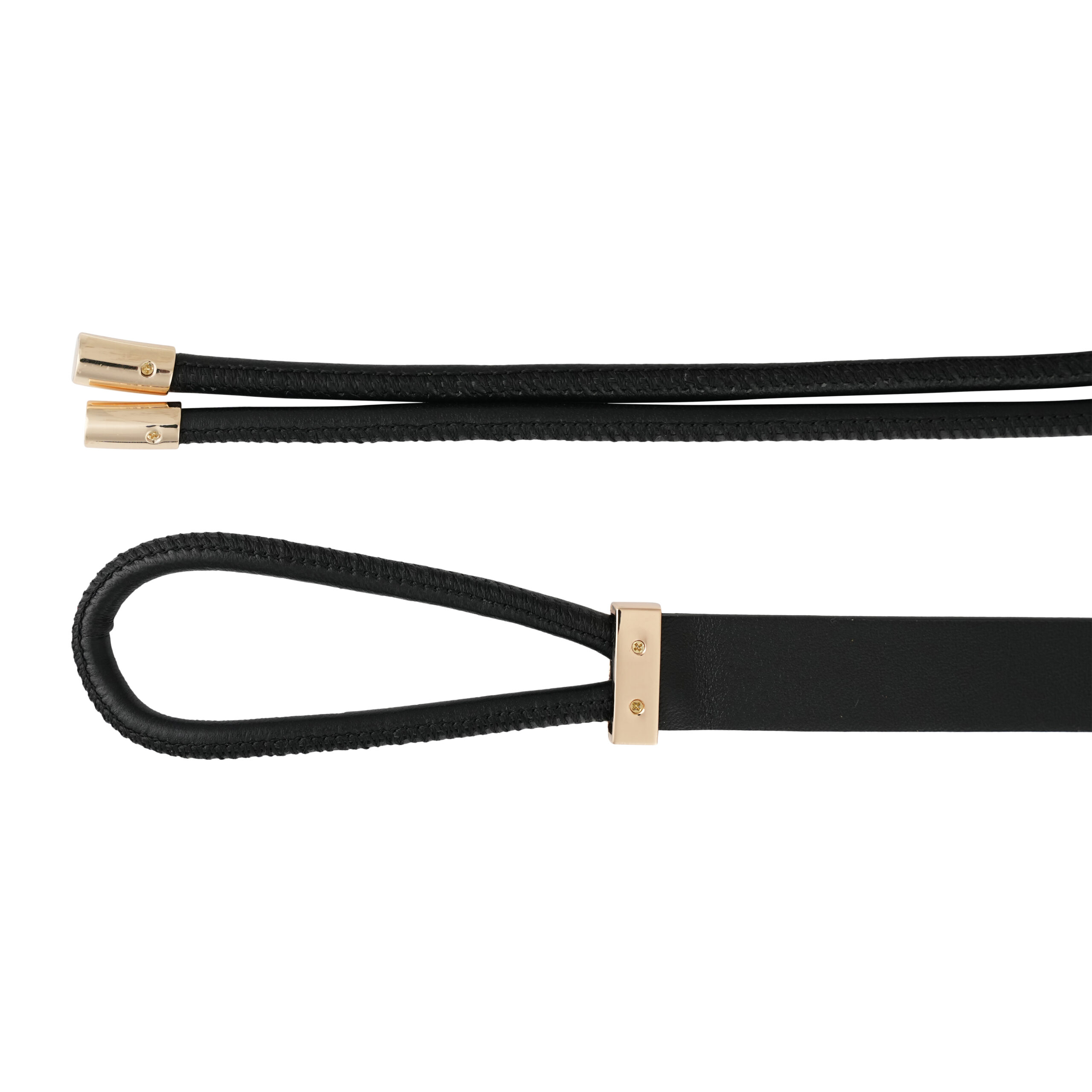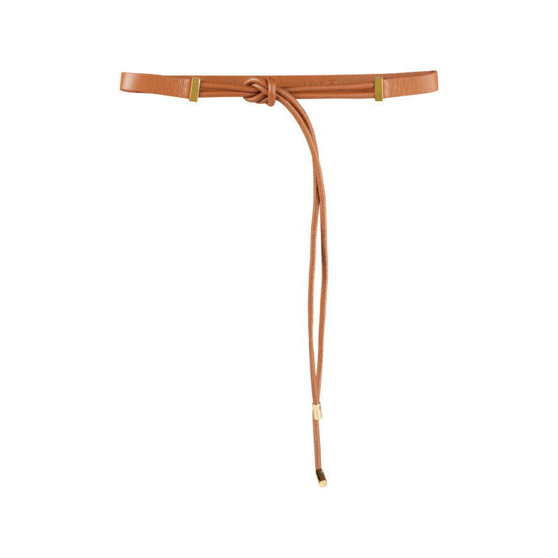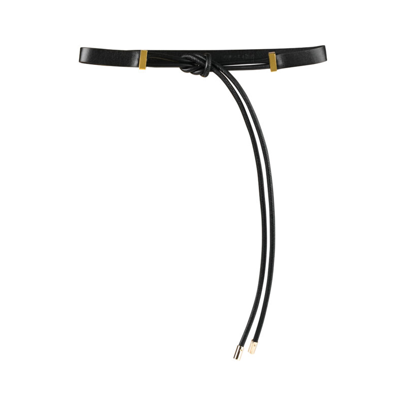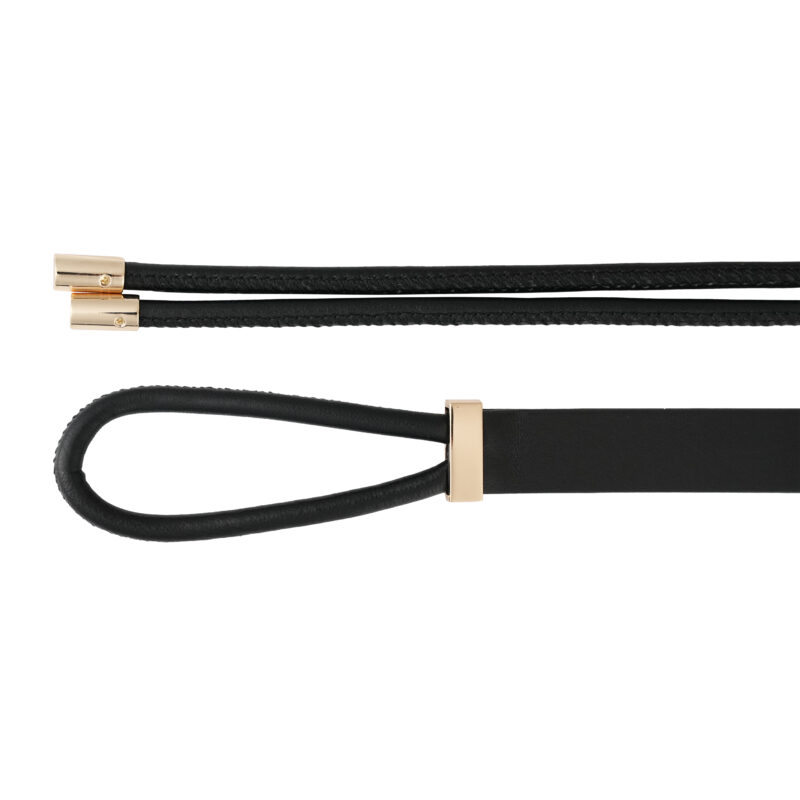 - Thiết kế dây thắt cách điệu với chi tiết kim loại mạ vàng: