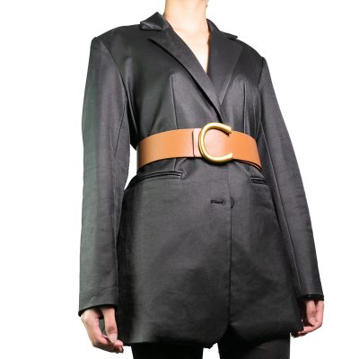 Chiếc thắt lưng có thiết kế bản to, tạo điểm nhấn nổi bật cho trang phục. Mặt khóa được làm bằng kim loại cao cấp, mạ vàng sáng bóng, giúp outfit nàng thêm cá tính, năng động hơn. Chiếc thắt lưng có thể được sử dụng với nhiều loại trang phục khác nhau, từ quần jean, quần âu đến váy.