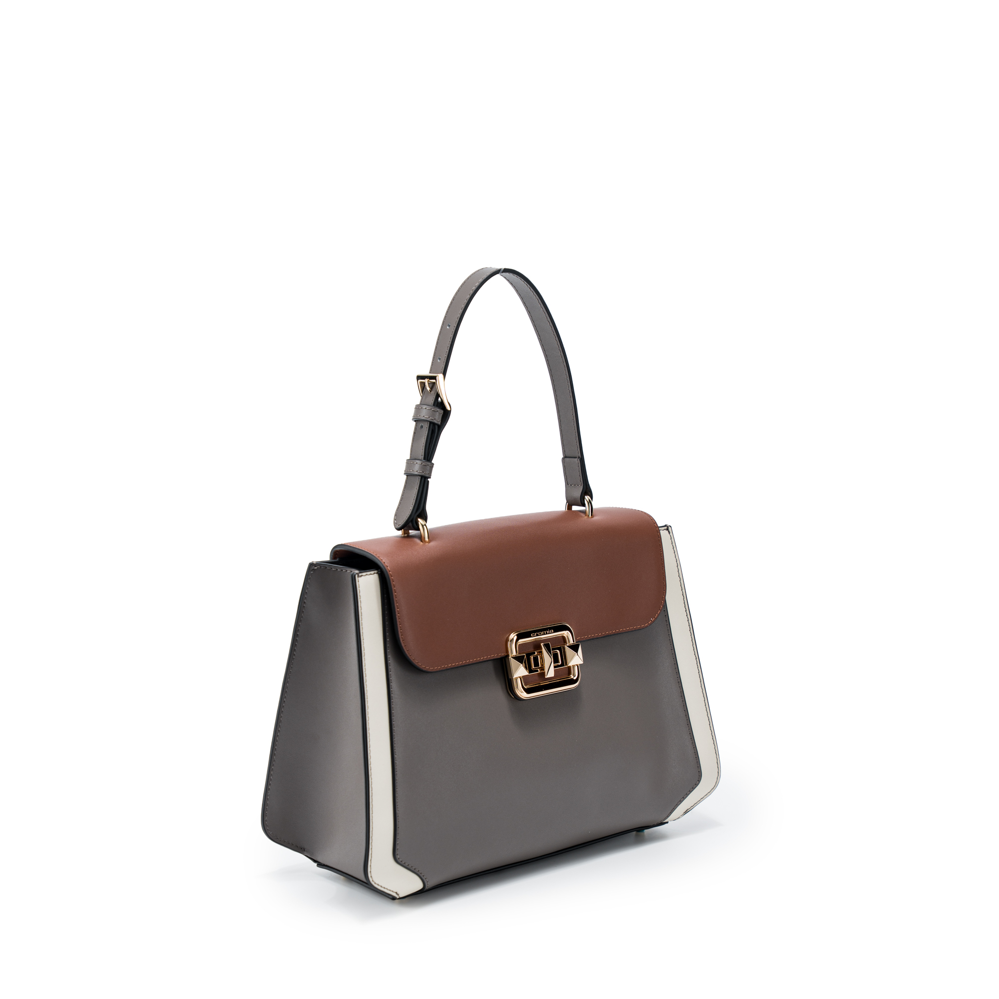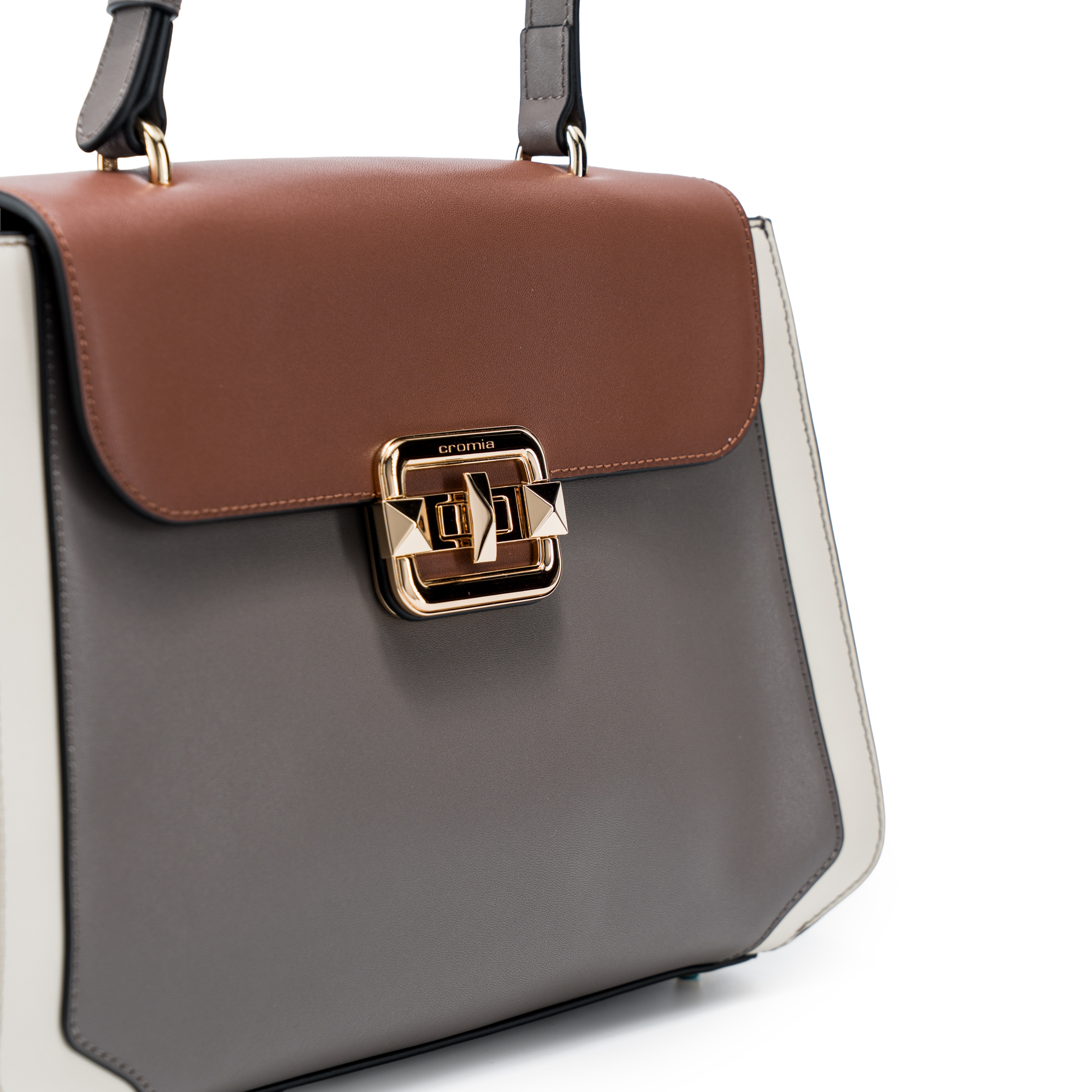 Điểm nổi bật: Chiếc túi xách nữ Cromia ISABELLA – Xanh xám Ardesia 1406128-ARD thuộc BST ISABELLA, hiện thân của vẻ đẹp nữ tính và tinh tế. Túi sở hữu phom dáng top handle flap dáng hộp, nắp gập vuông vức phối màu tinh tế, thân túi cứng cáp tạo hình khối rõ ràng. Sắc Ardesia xám khói – màu của những viên đá phiến xứ Tuscany, toát lên vẻ thanh lịch trầm mặc, da bê mịn ôm sát các đường cắt uốn lượn, dẫn lối ánh nhìn đến khóa kim loại đặc trưng của Cromia, vừa mạnh mẽ vừa dịu dàng. Kết hợp cùng bộ ba màu: nắp Cognac nâu ấm, thân Ardesia xám đá mát lạnh, viền Ivory kem sữa, mang tới một vibes “Tân Cổ Điển” đầy mê hoặc – nơi sự ấm áp cổ điển giao thoa với vẻ đẹp hiện đại và tối giản.