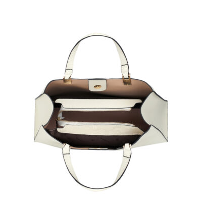 Cấu tạo bên trong túi: Lớp lót làm bằng da cao cấp, có 03 ngăn rộng rãi để điện thoại, ví, tiền, son, phấn, tài liệu, ipad, laptop,… trong đó 01 ngăn có khoá kéo được mạ vàng tĩnh điện, giúp nàng bảo quản đồ cá nhân an toàn.
