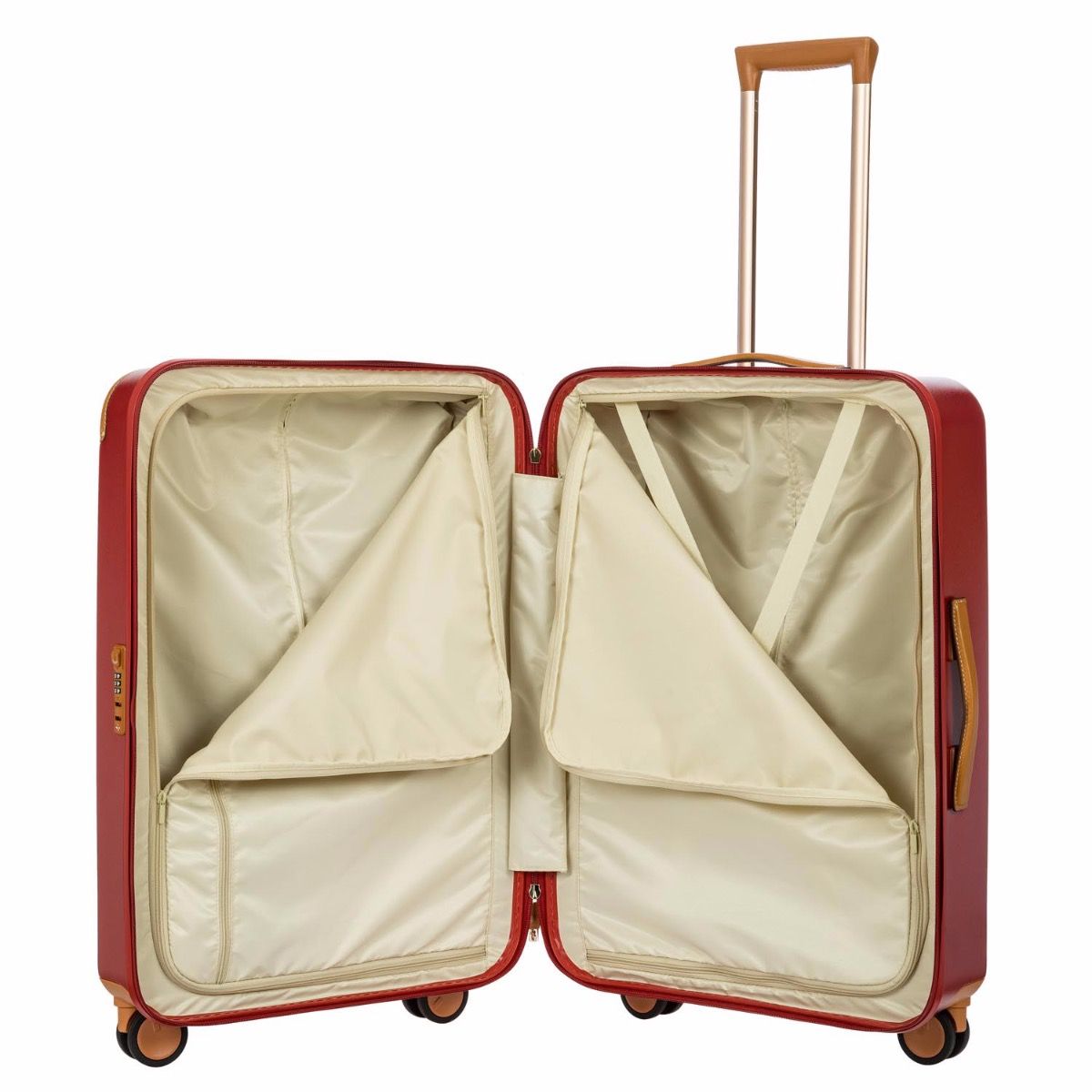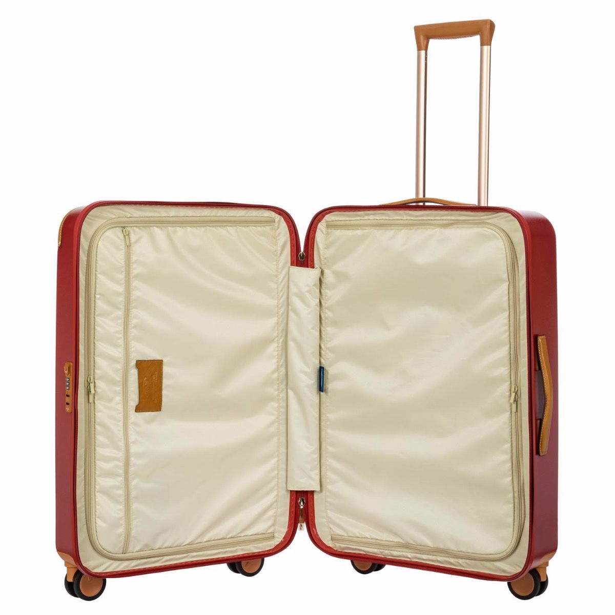 Vali ký gửi BRIC’S màu đỏ được trang bị tay kéo 3 nấc điều chỉnh, phù hợp với chiều cao của tất cả mọi người. Ổ khoá vali đạt tiêu chuẩn TSA Hoa Kỳ, bánh xe 360 độ theo công nghệ Nhật Bản êm ái, không gây tiếng động.