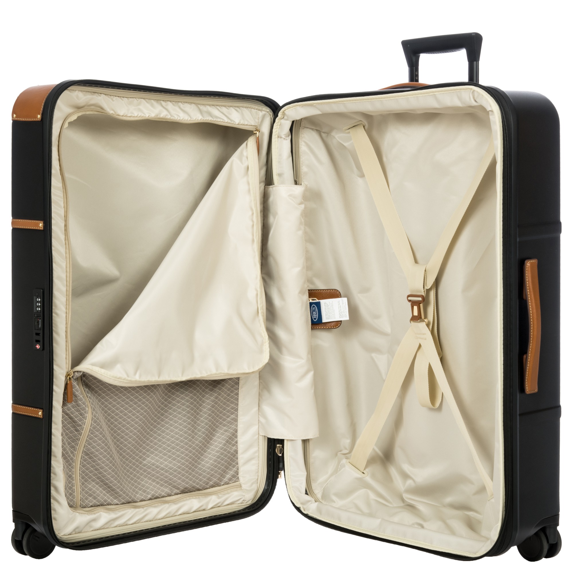 Vali ký gửi BRIC’S bao gồm 2 khoang chứa hành lý rộng rãi, có khoá kéo, giúp bạn sắp xếp hành lý của mình một cách khoa học nhất. Một khoang chứa ngăn zip để đựng đồ quan trọng, một ngăn chứa móc treo quần áo có thể treo tối đa 3 mắc áo.
