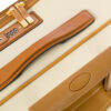 Nâng tầm đẳng cấp cho khối hành lý lớn là những chi tiết da bò thật vùng Tuscan được xử lý tỉ mỉ. Từ tay cầm êm ái, logo thương hiệu, thẻ tên cho đến các đường viền trang trí, tất cả đều ngả màu tự nhiên theo thời gian (patina), tạo nên vẻ đẹp Vintage độc bản đầy mê hoặc.